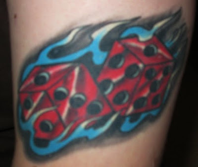 Dice tattoo designs are a very popular style which appeals to a wide variety of tattoo lovers. Whether you are a high roller with a flare for gambling or you just enjoy the fine design of the rolling dice.